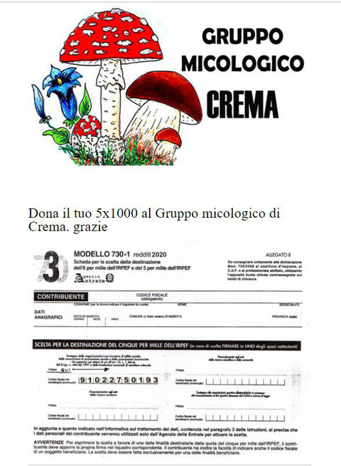Dona il tuo 5x1000 al Gruppo micologico di Crema. Grazie